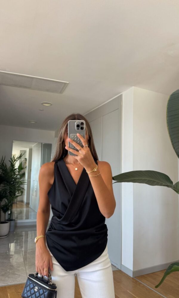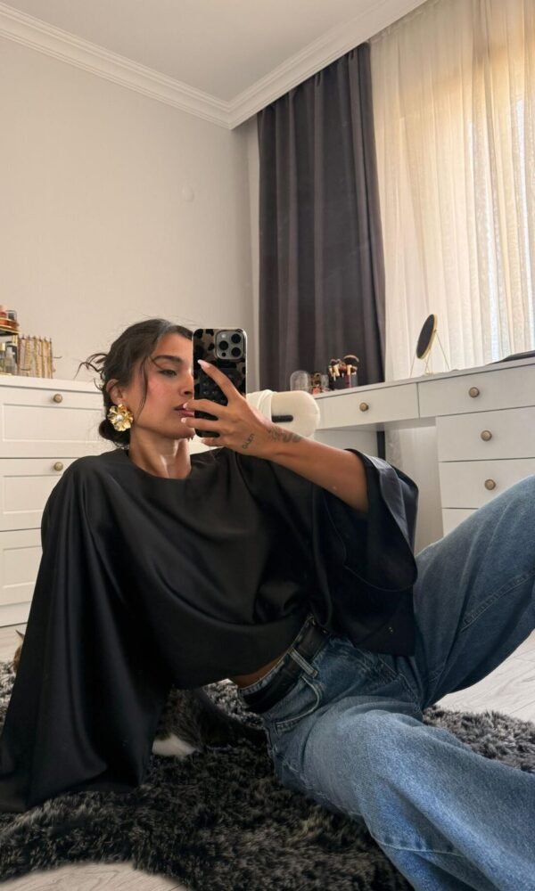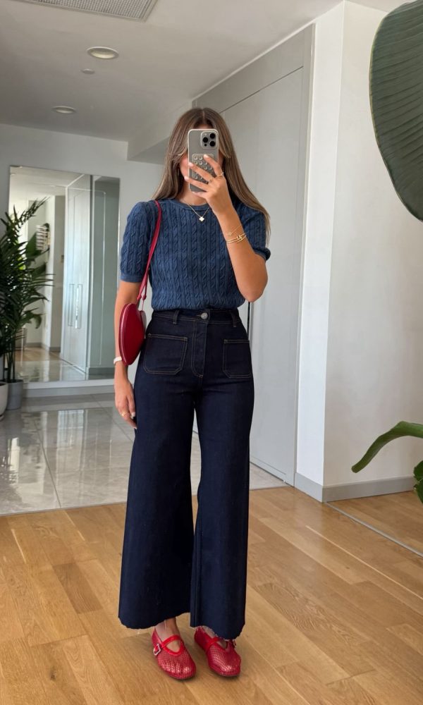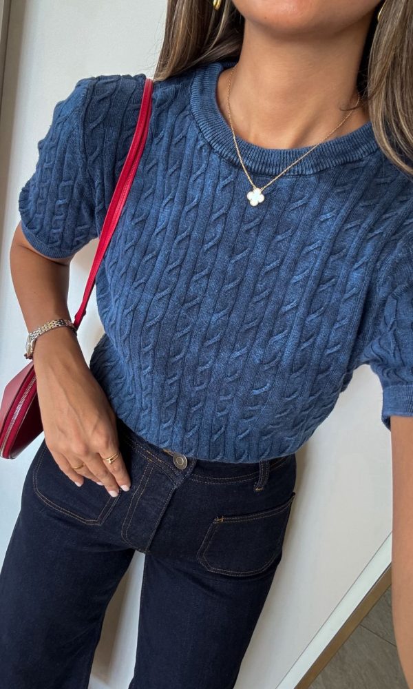 Lucca Washed Short Sleeve Knitwear Blouse – Navy Blue