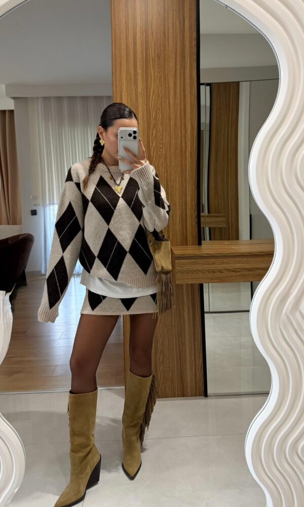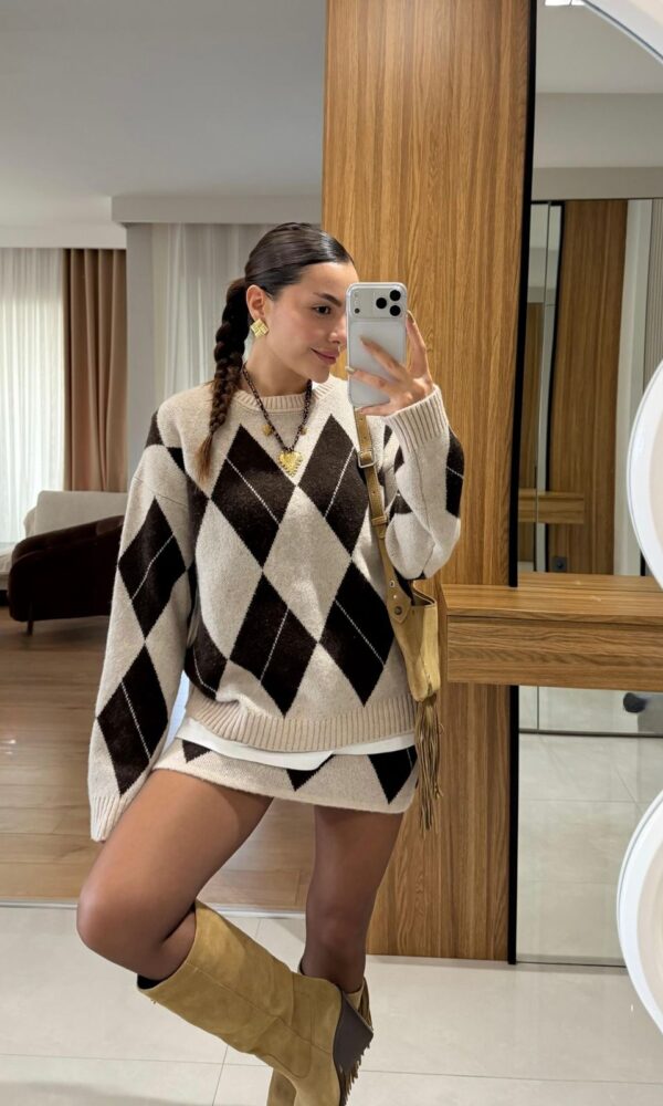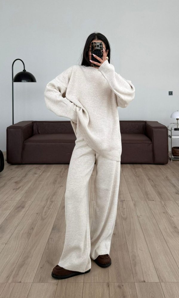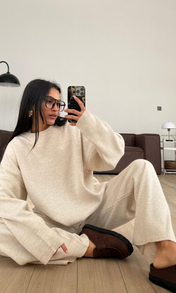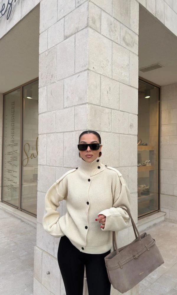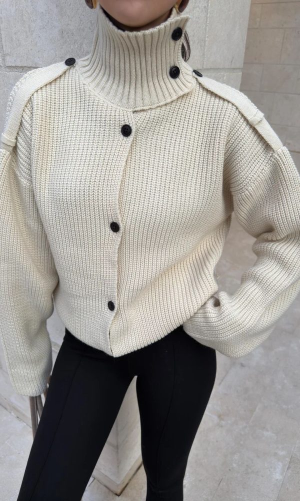 Biyeli Striped Ecru Short Sleeve Knitwear