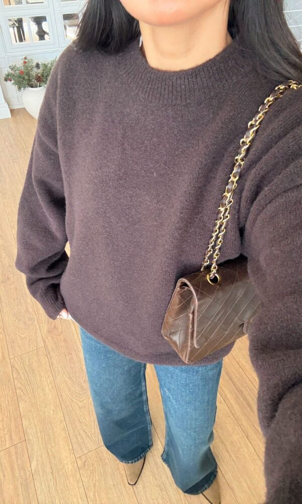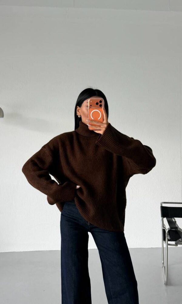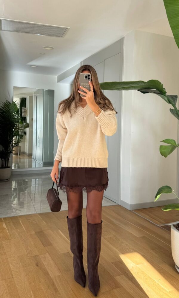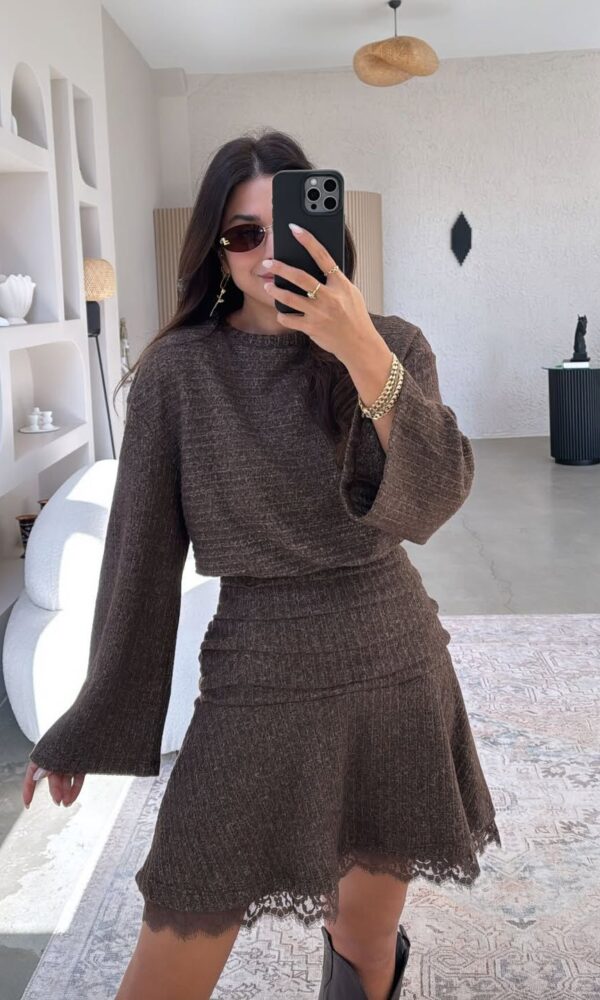 Brown Knit Long Sleeve Mini Dress