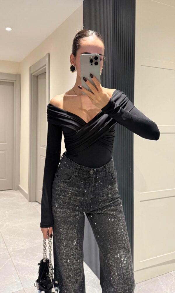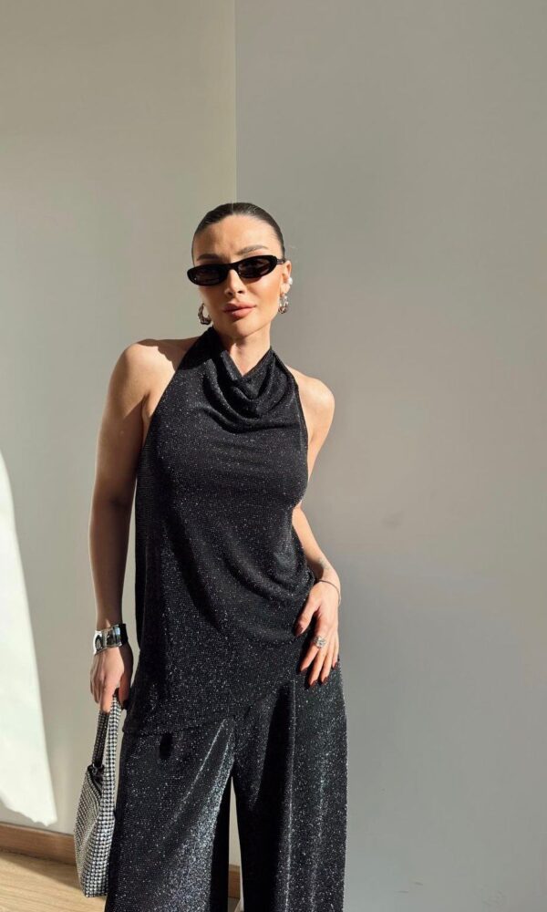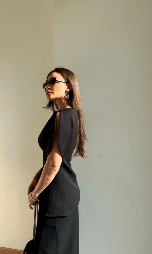 Shimmerical Back Neckline Asymmetrical Blouse Set