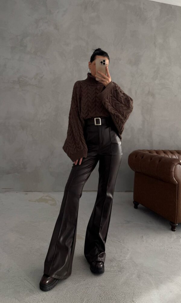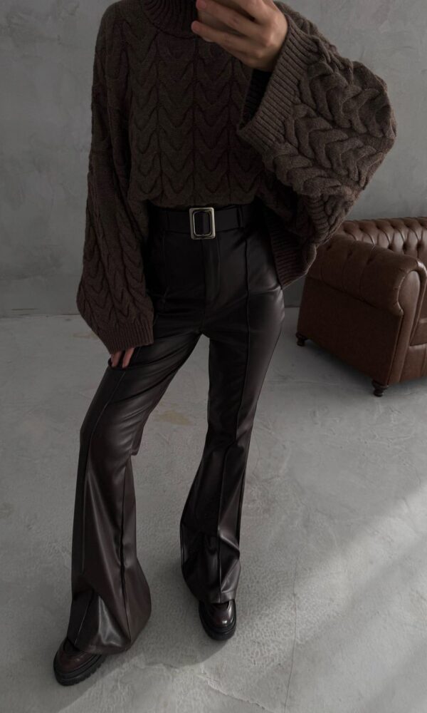 Lycian Spanish Leg Bitter Brown Belted Leather Trousers