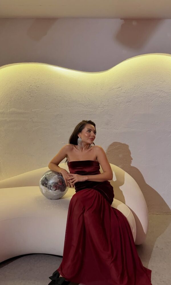Demeter Claret Red Strapless Tulle Detailed Dress
