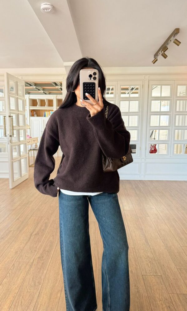 Brown Crew Neck Brand Model Basic Body