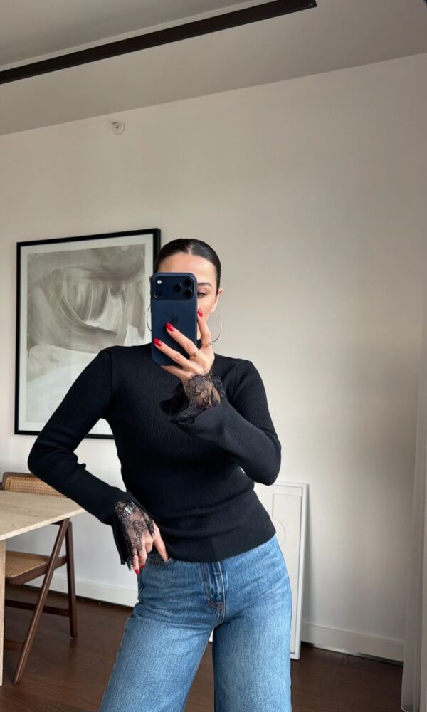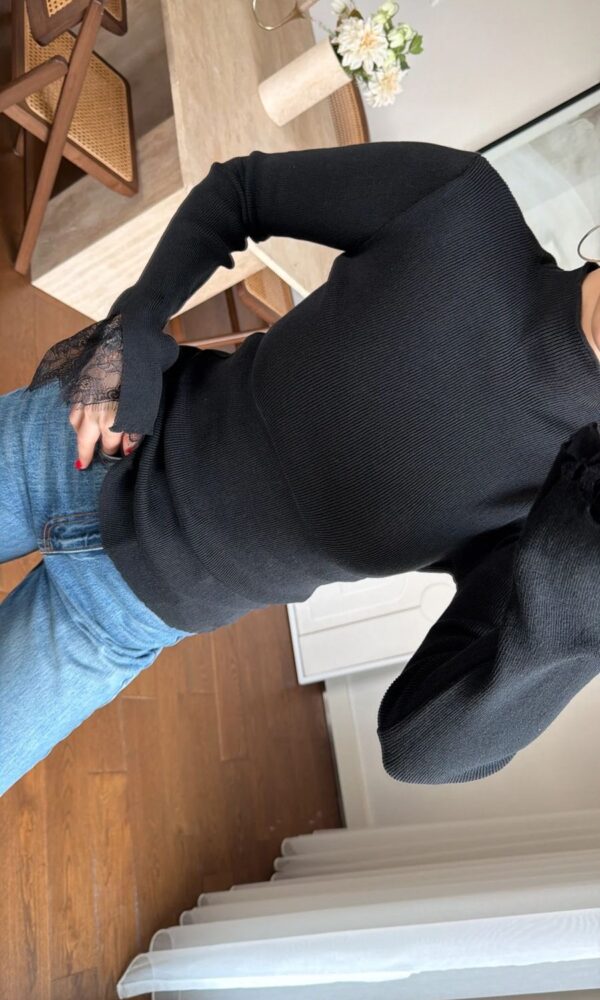 Black Lace Trim Long Sleeve Top