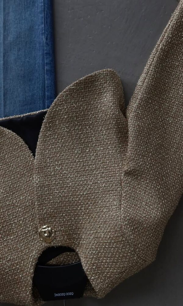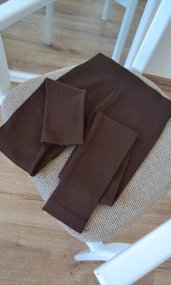 Brown Ribbed Cap Sleeve Mock Neck Top
