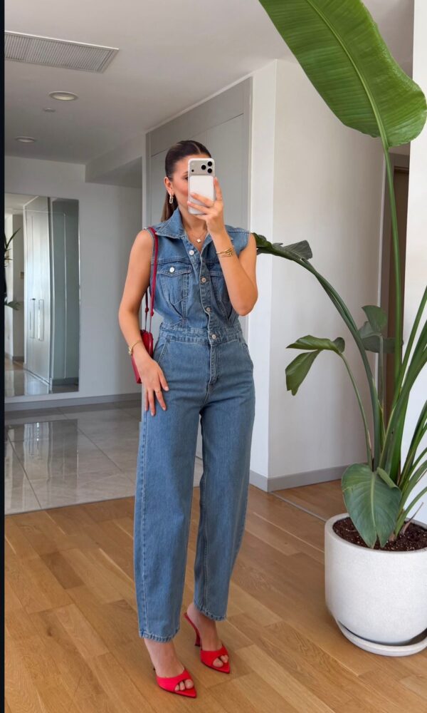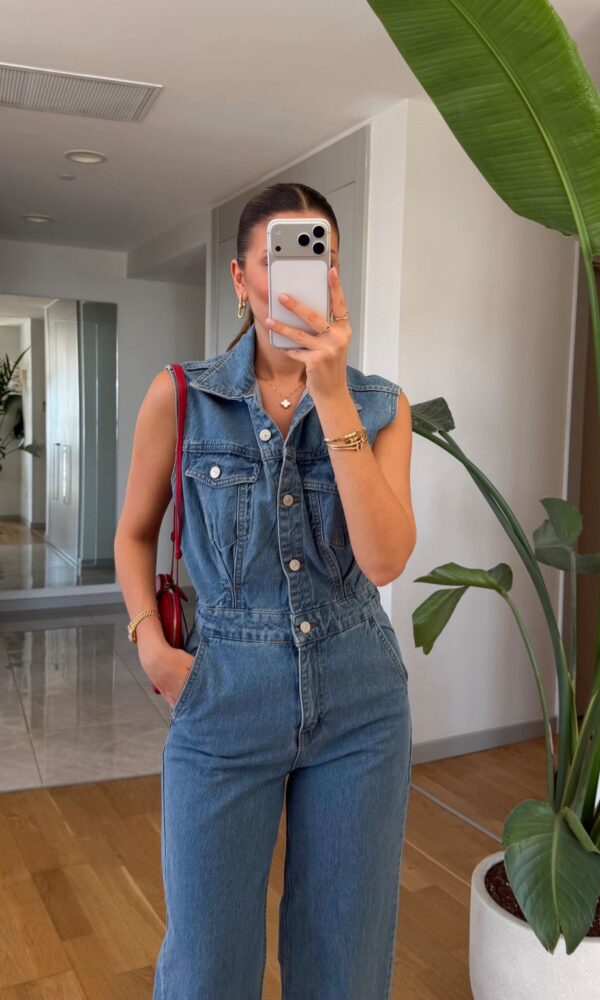 Sleeveless Blue Denim Jumpsuit