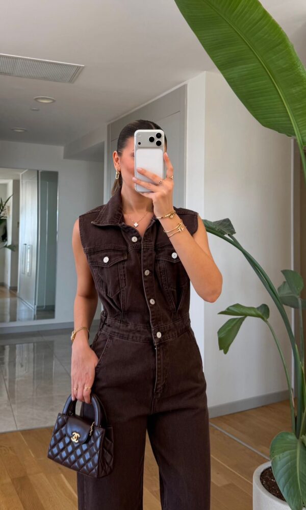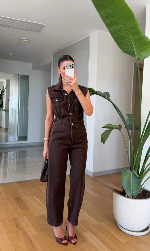 Sleeveless Brown Denim Jumpsuit