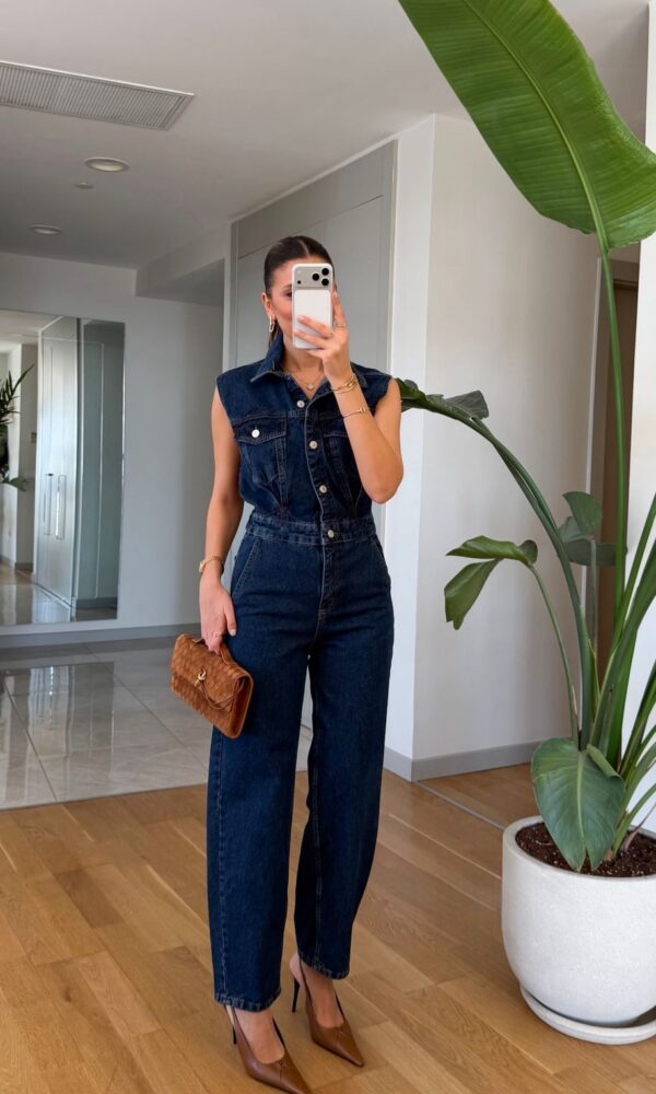Sleeveless Dark Denim Jumpsuit