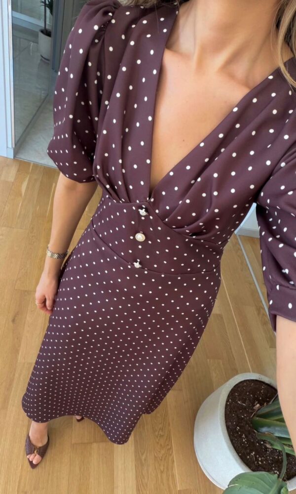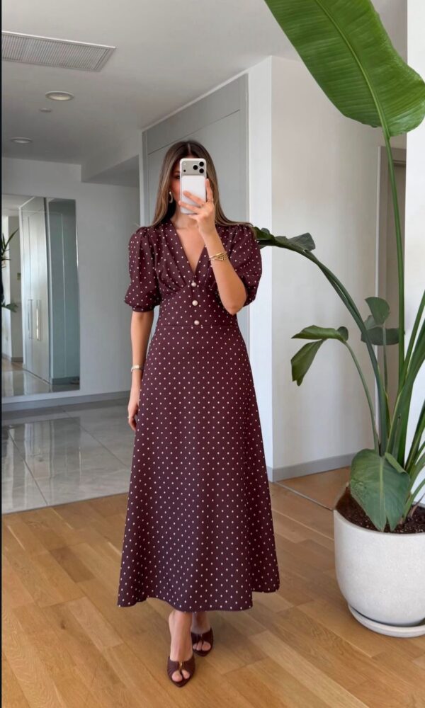 Brown Short Sleeve Button Midi Dress