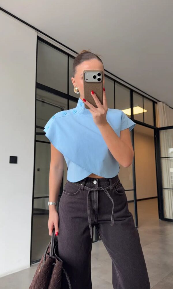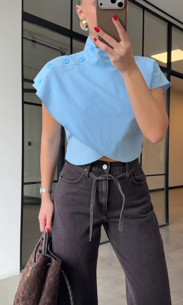 Sleeveless Navy High Neck Belted Top
