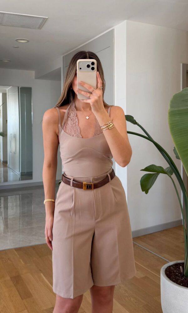Olive Green Sleeveless Belted Top