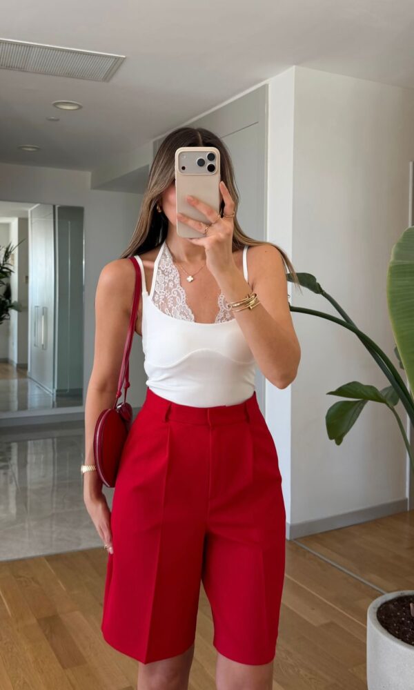 Red Ruched Side Short Sleeve Top