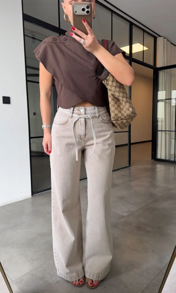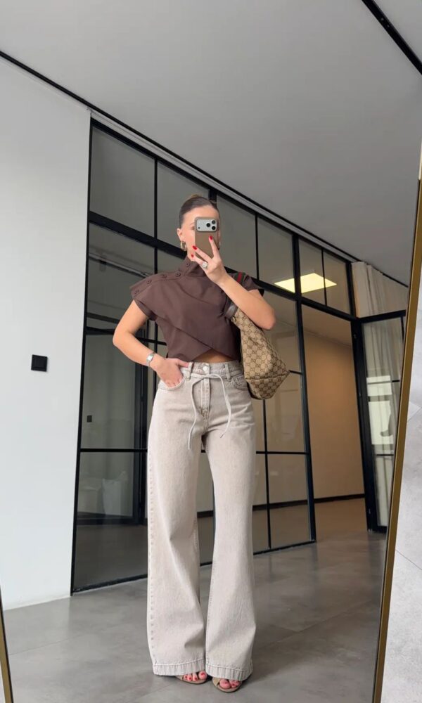 Brown Ruched Side Short Sleeve Top