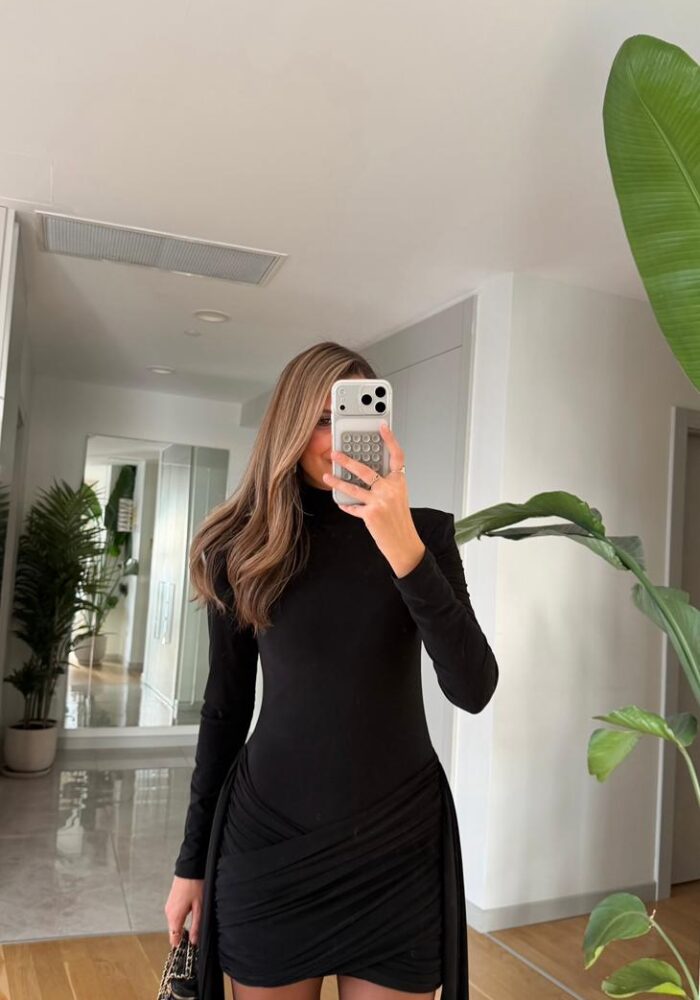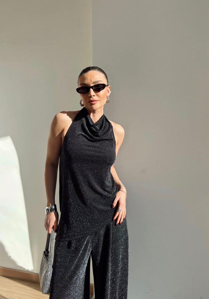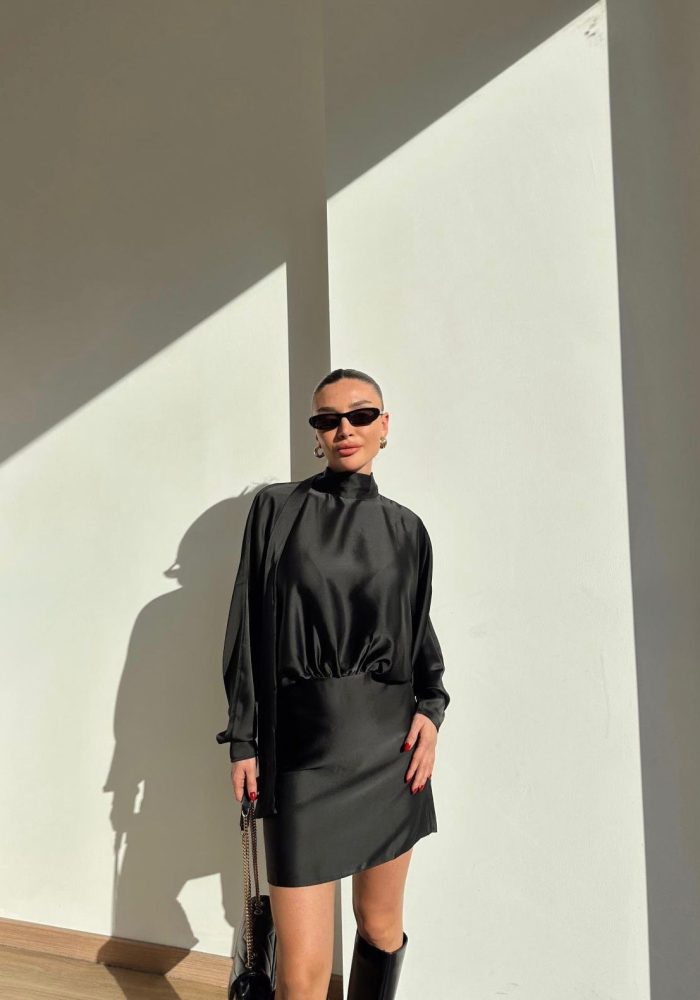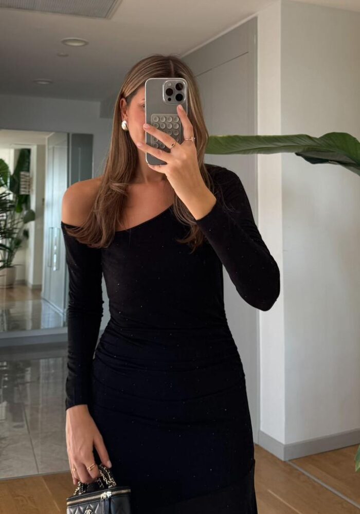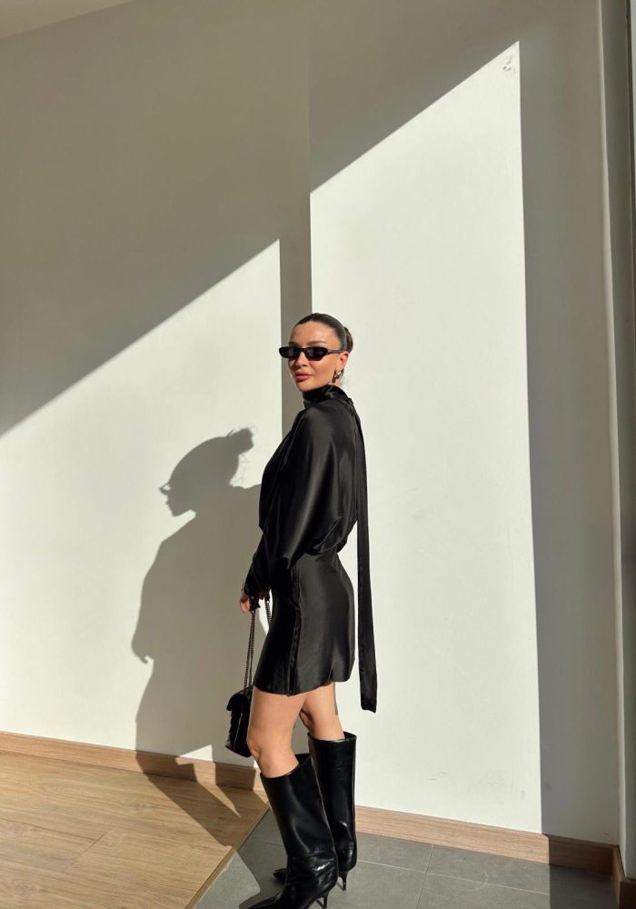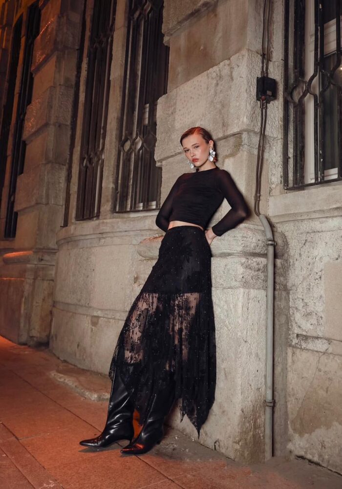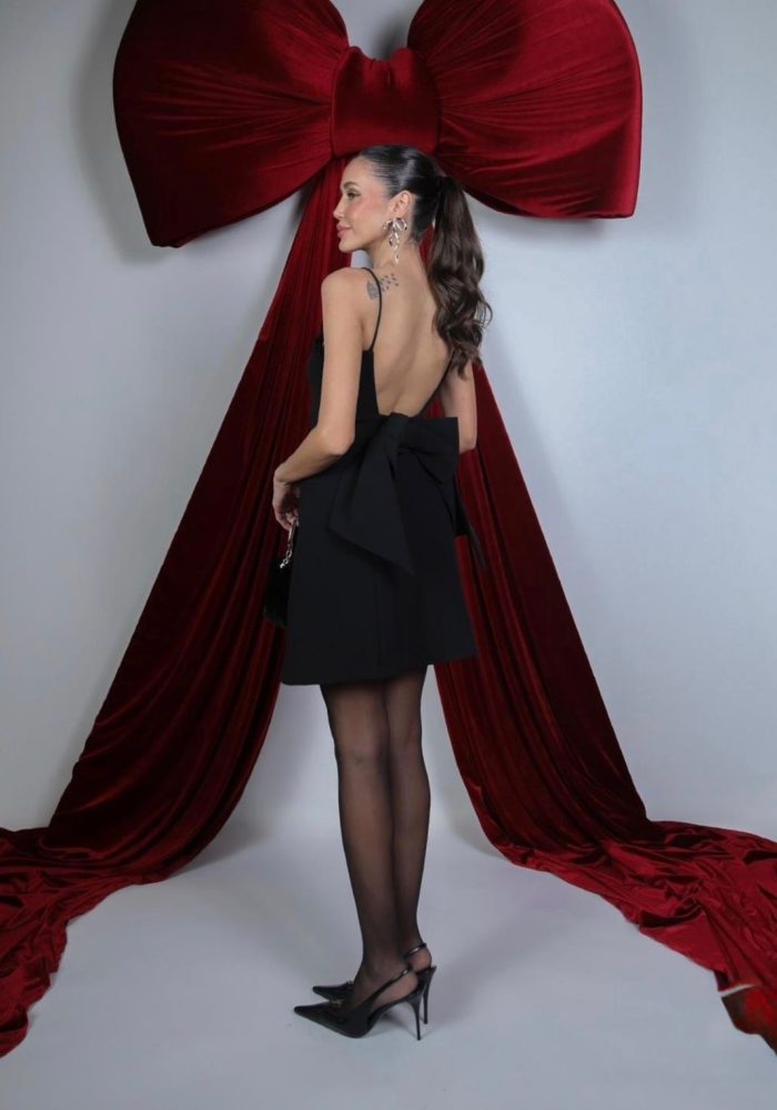 Astral Black Draped Zero Sleeve Skirt Lace Velvet Dress
