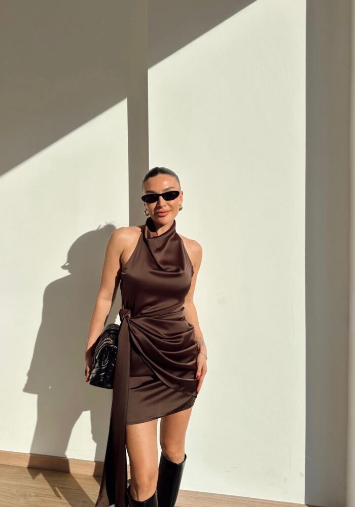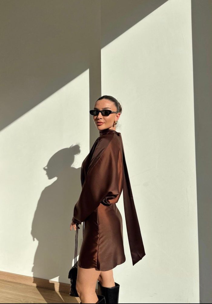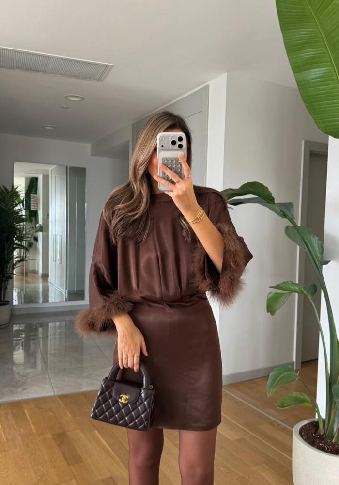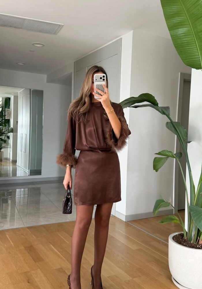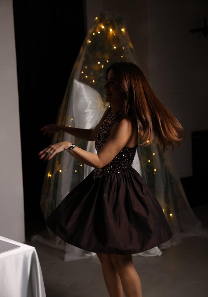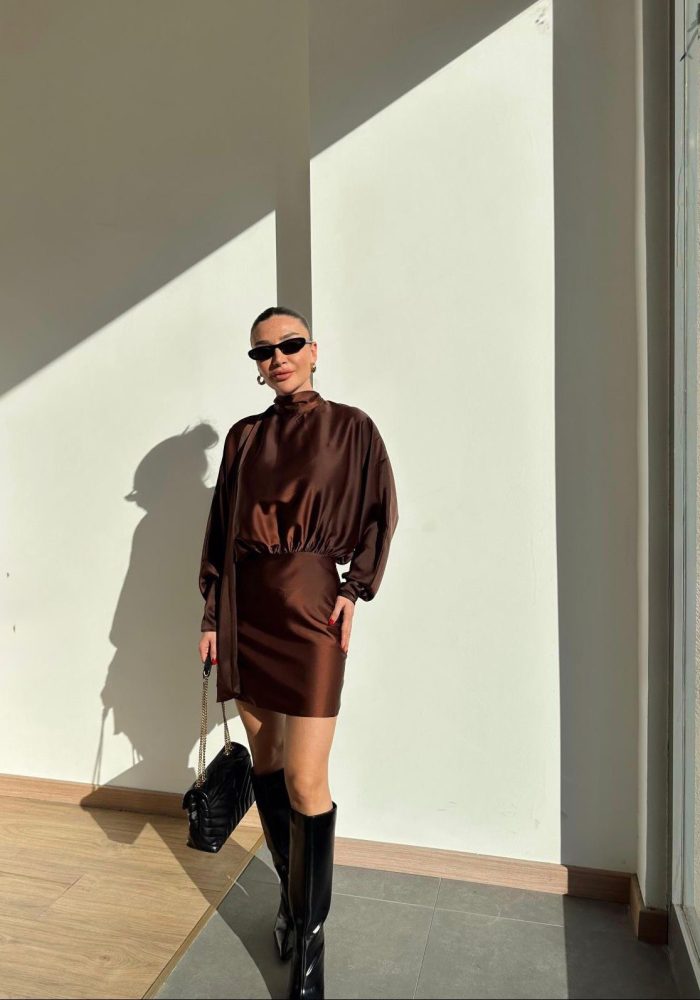 Preorder Top Sequin Bottom Poplin Dress -brown
