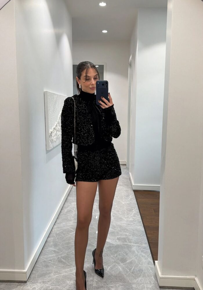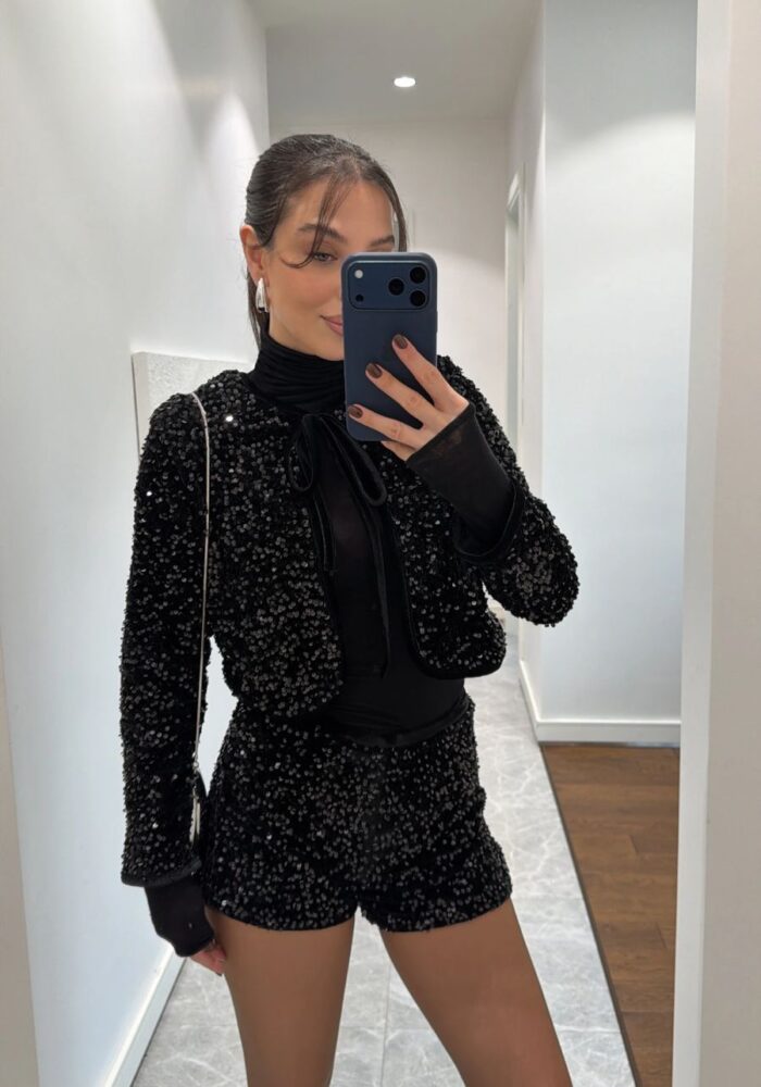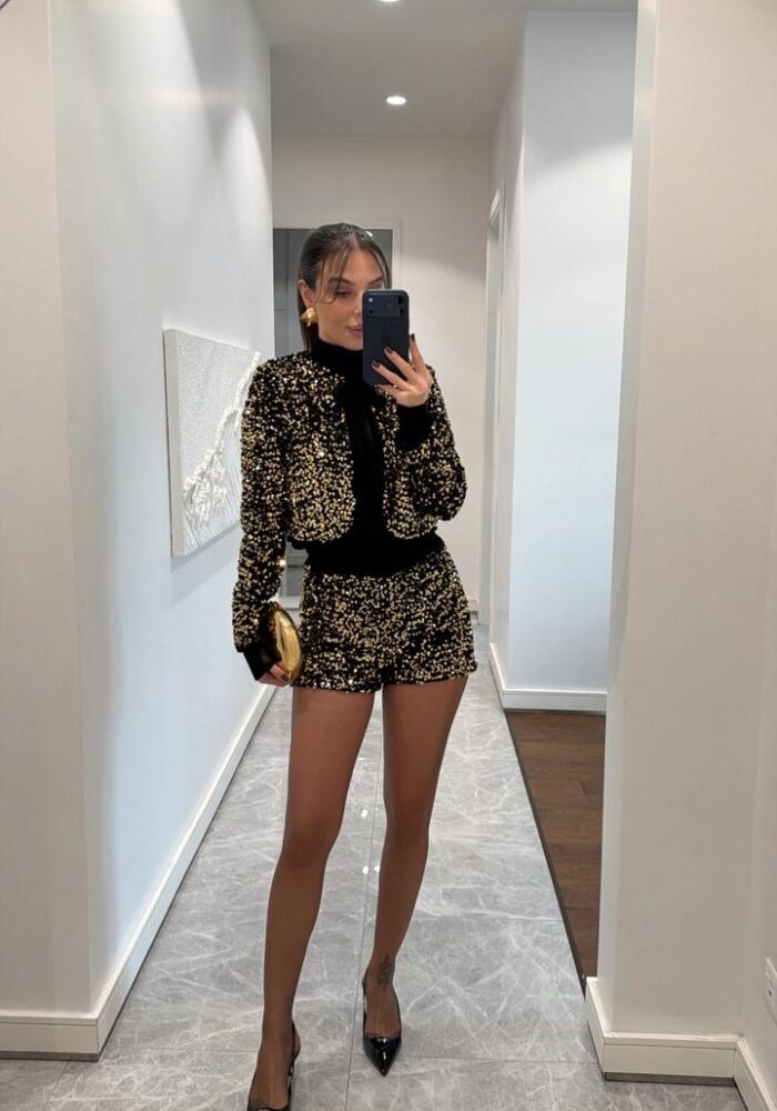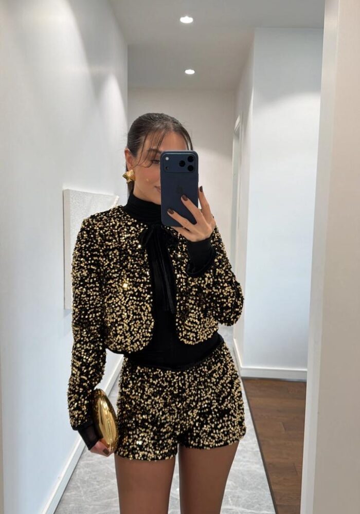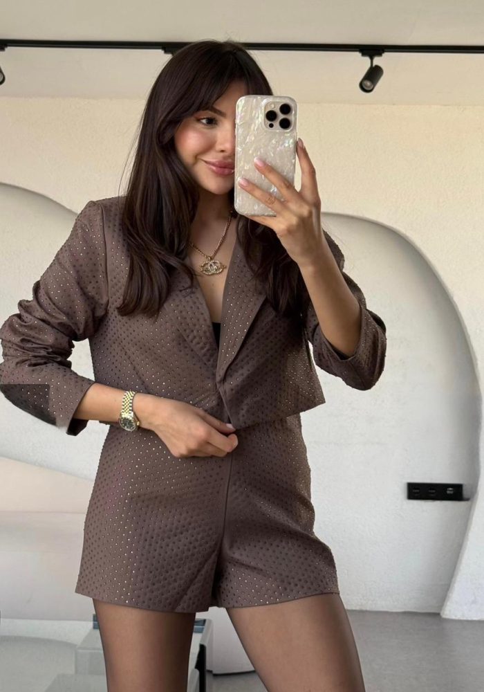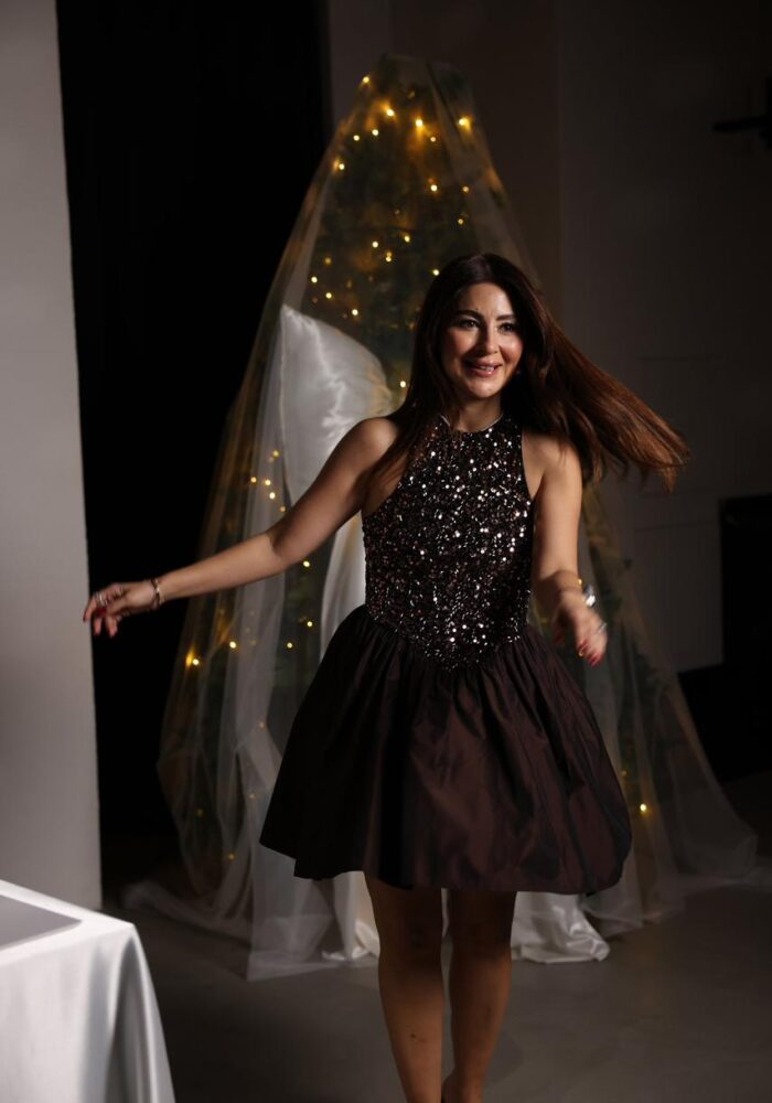 Preorder Top Sequin Bottom Poplin Dress -brown