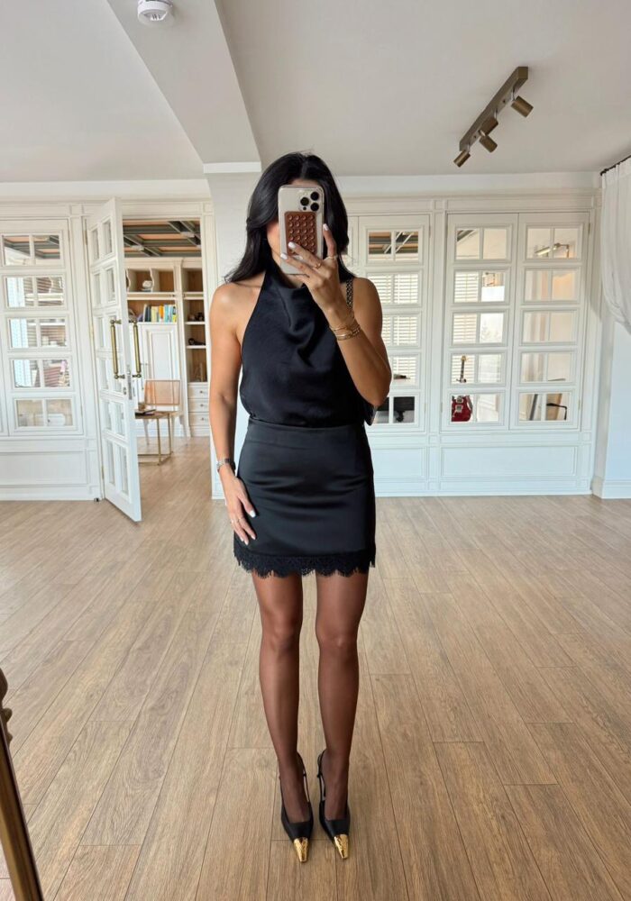 Daffy Duck Side Zippered Hem Lace Mini Satin Skirt
