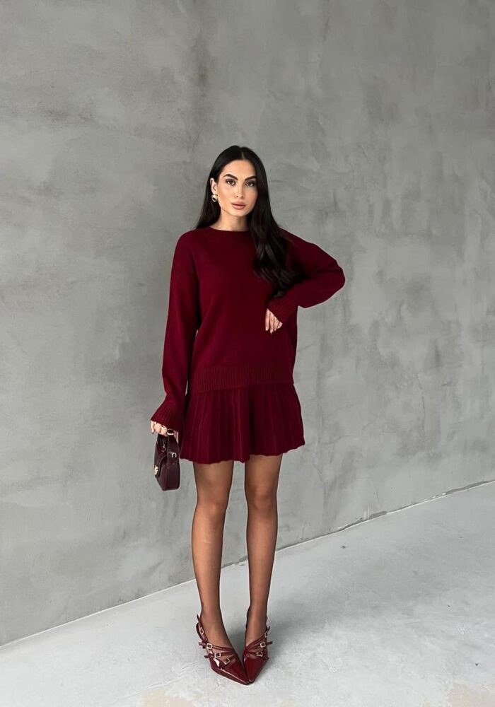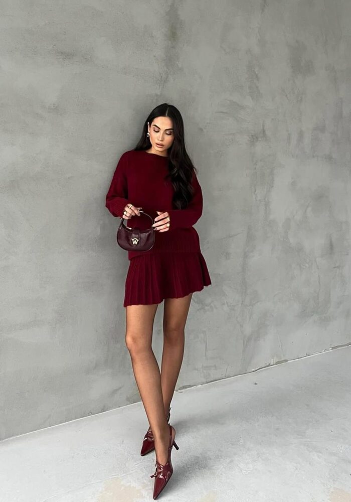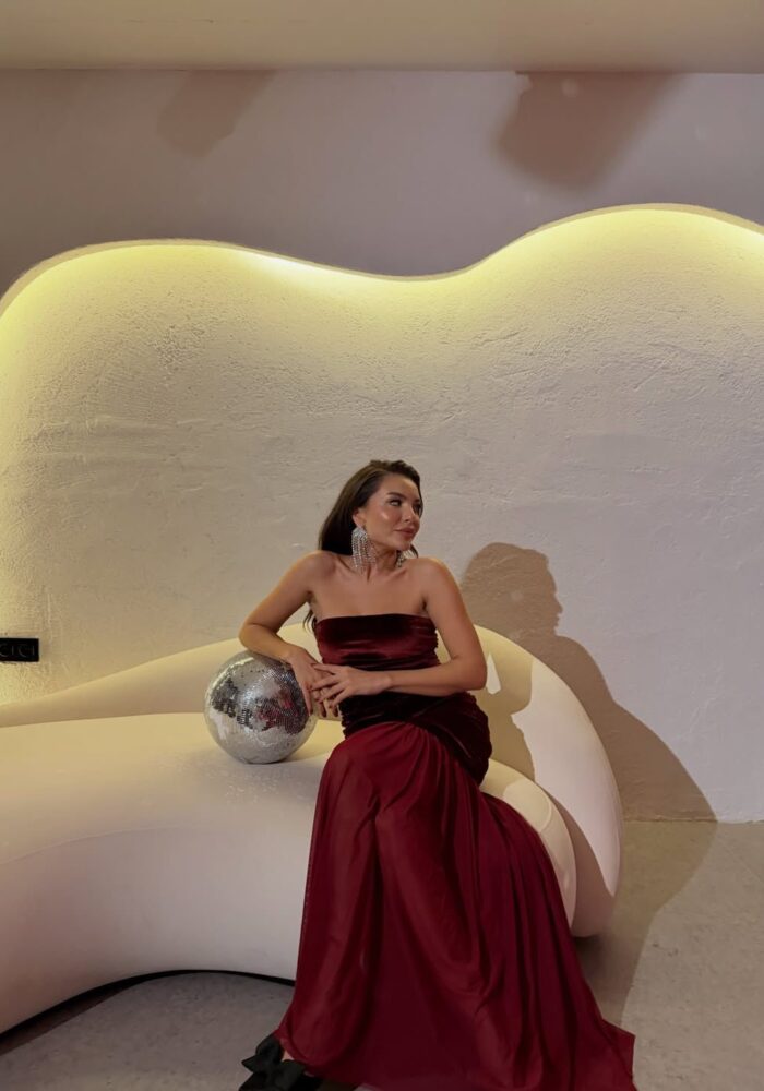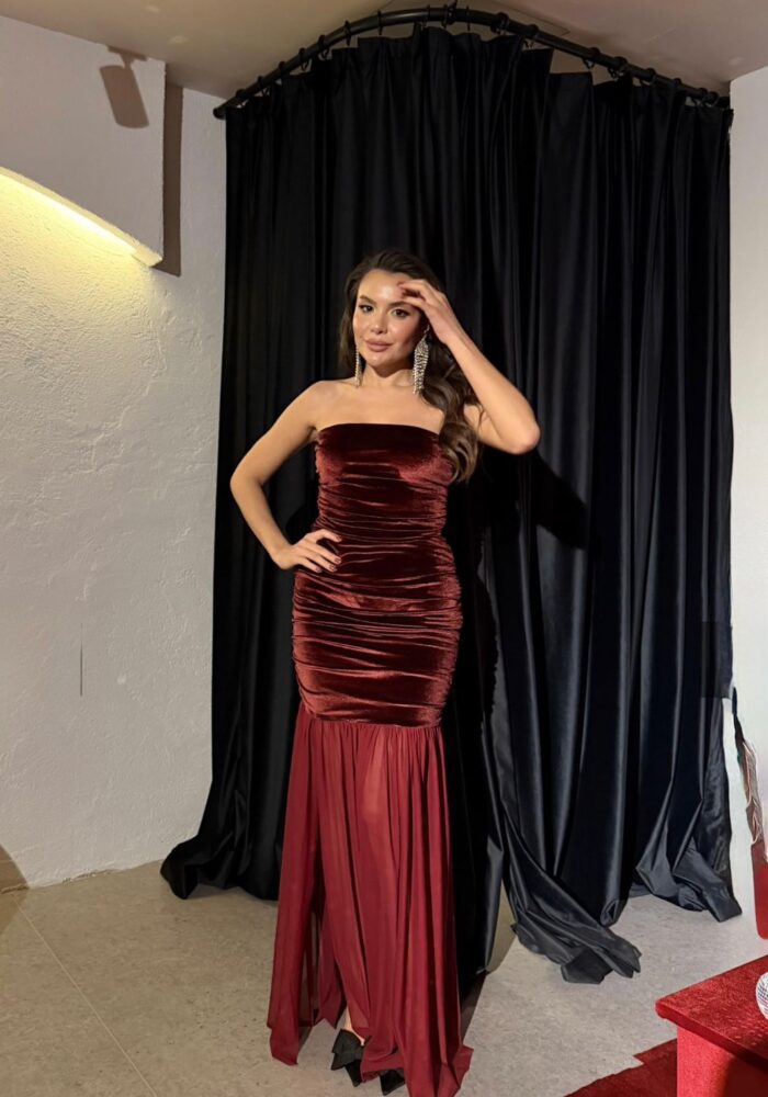 Demeter Claret Red Strapless Tulle Detailed Dress
