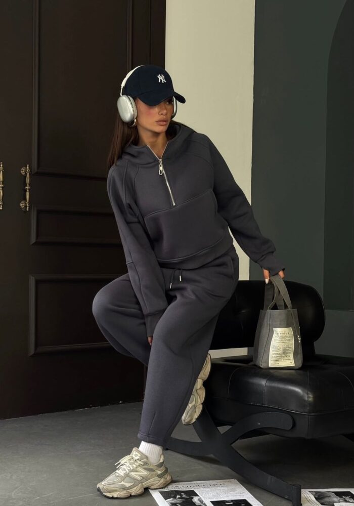 Dark Gray Half-zip Hoodie Sweatpants Set