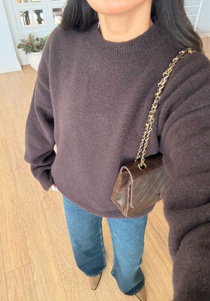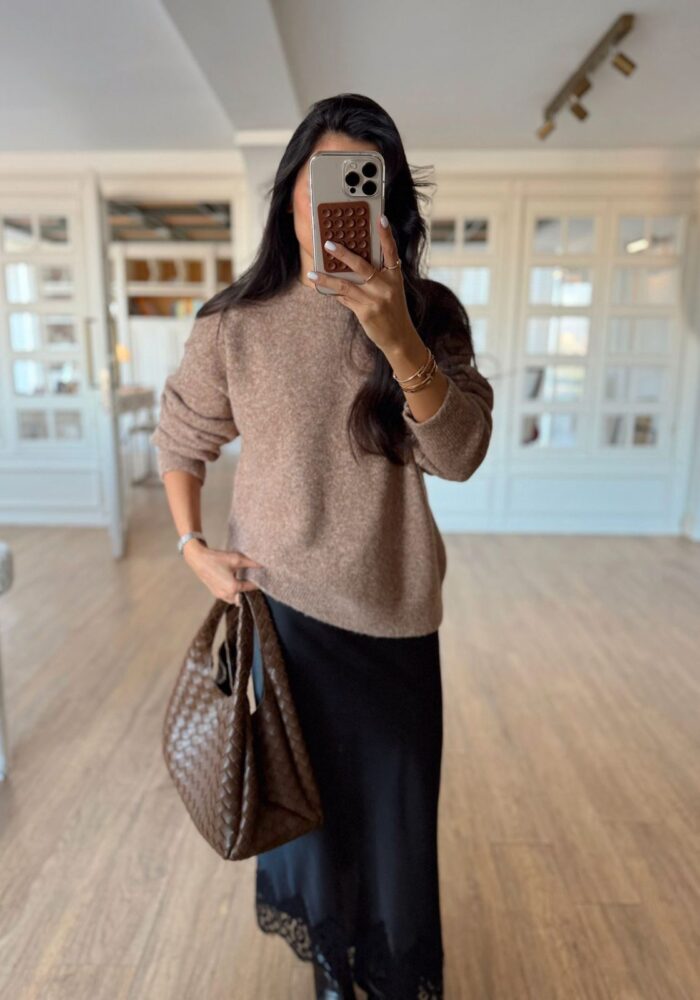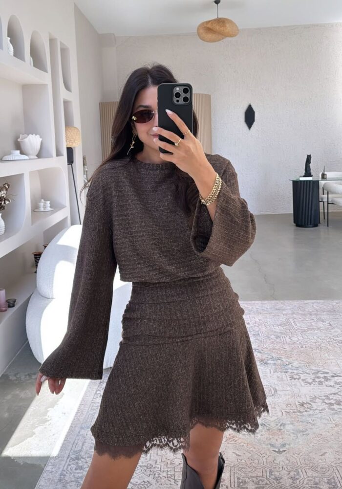 Brown Knit Long Sleeve Mini Dress