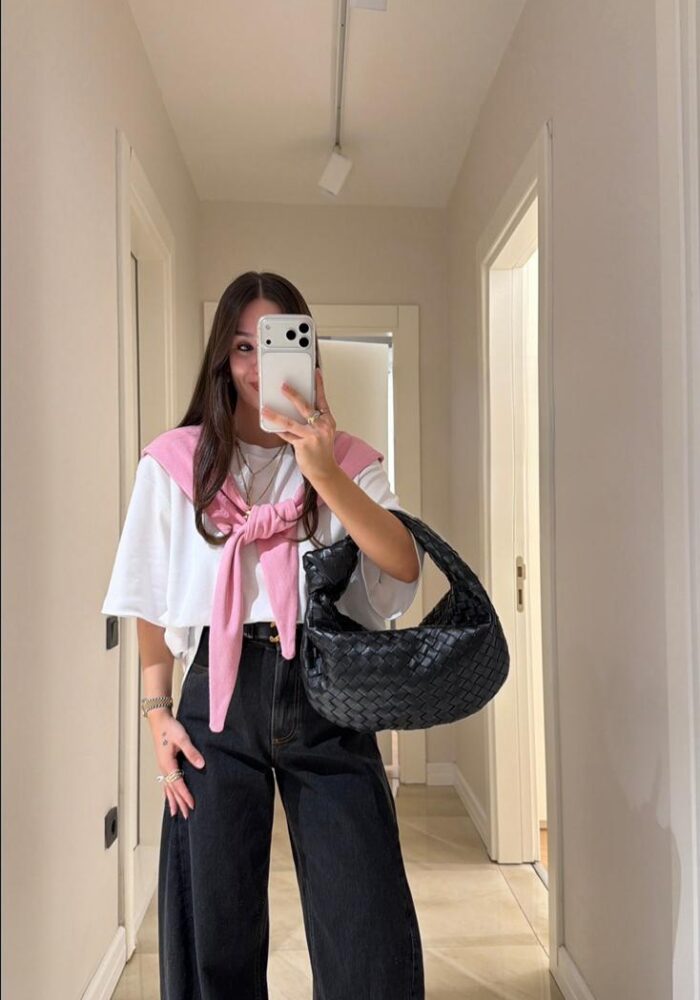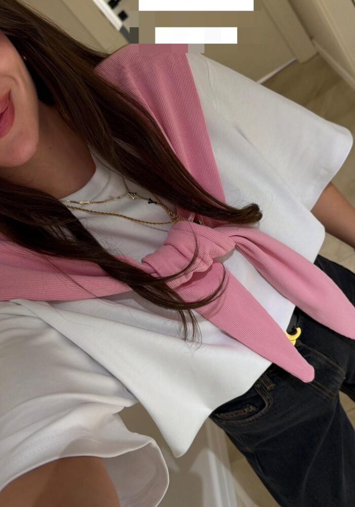 White Woven Top With Pink Scarf