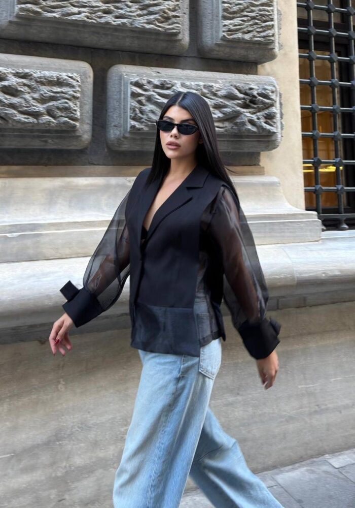 Black Sheer Sleeve Blazer Jacket