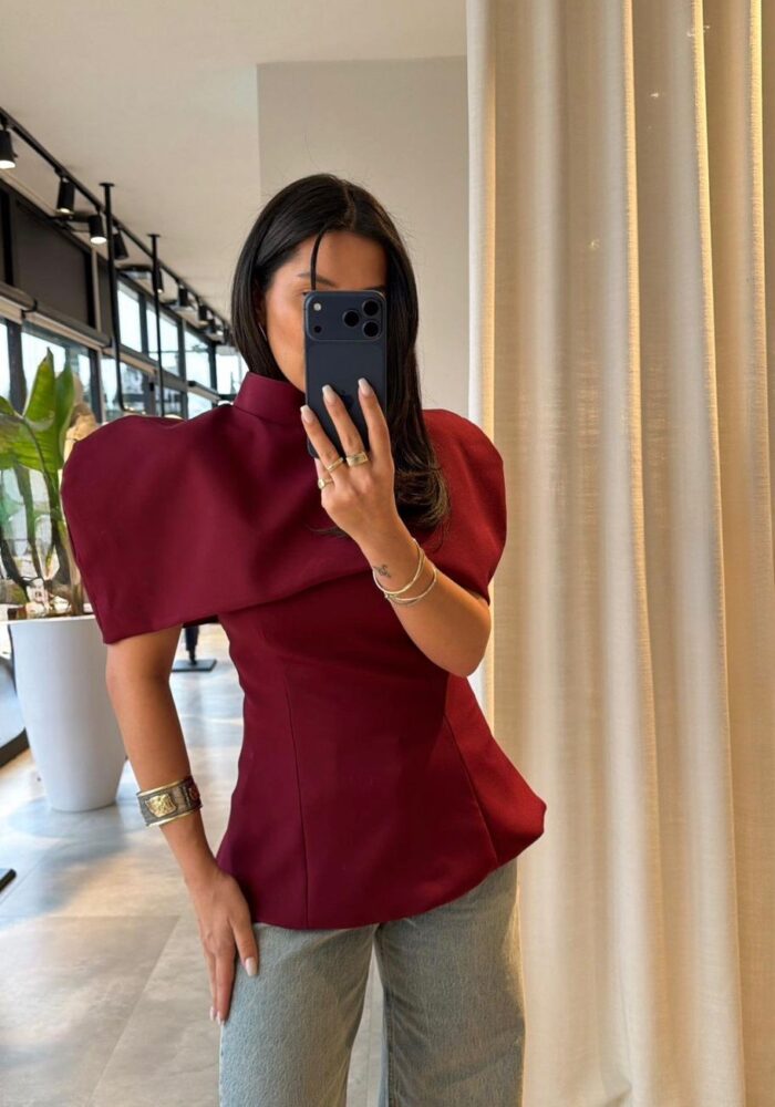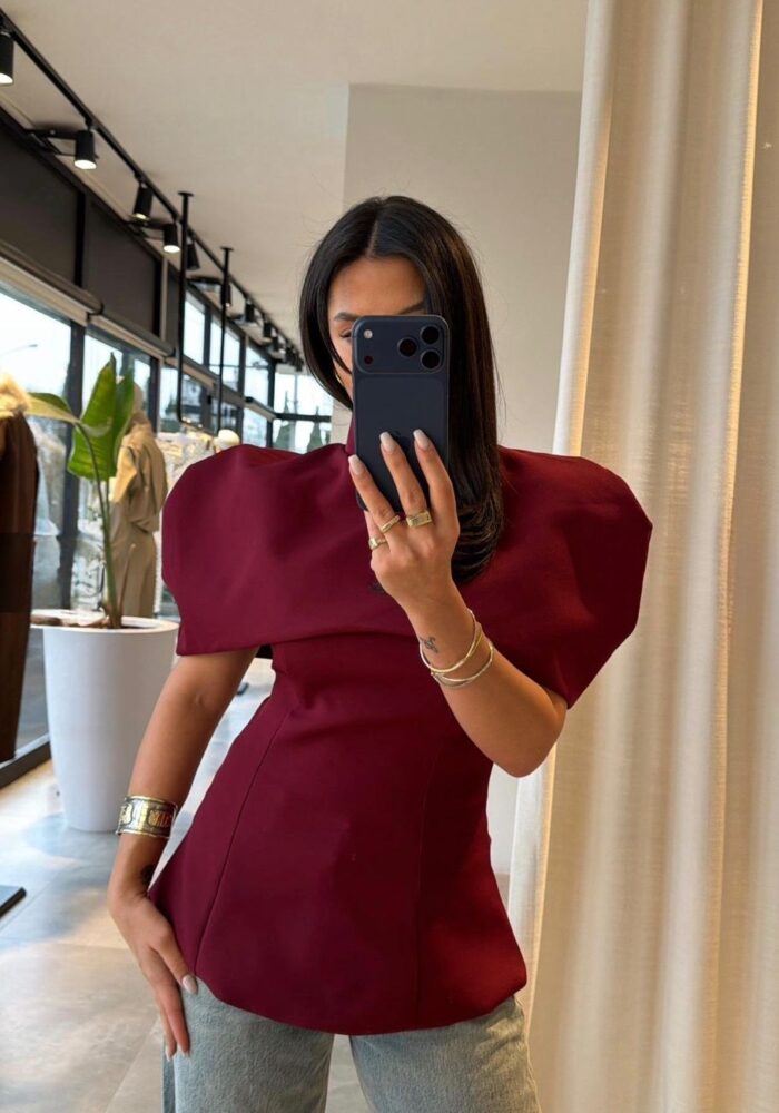 Burgundy Structured Shoulder Blouse