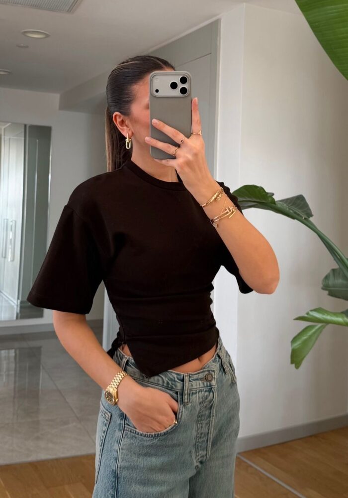 Black Twist Front Short Sleeve T-shirt