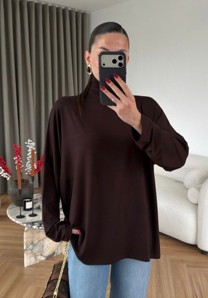 Brown Long Sleeve Turtleneck Top