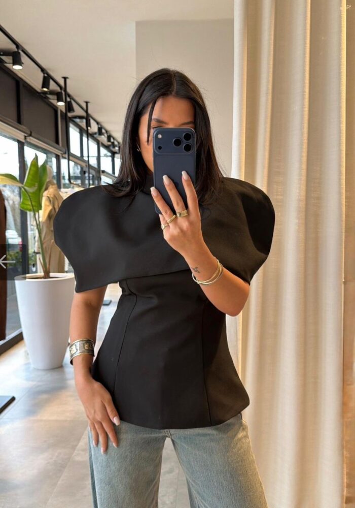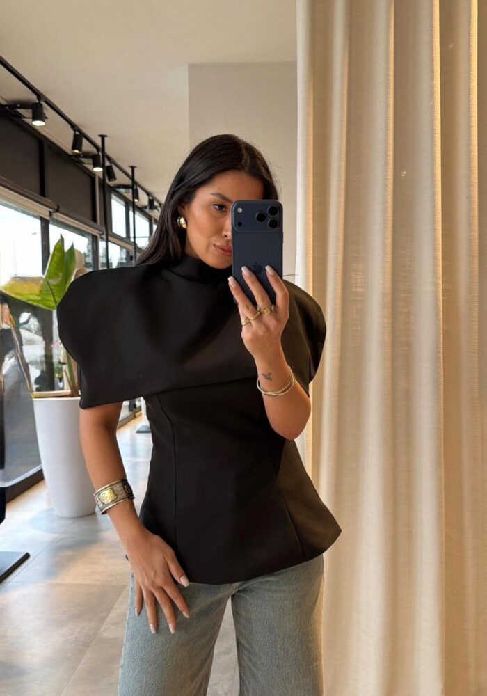 Black Structured Asymmetrical Shoulder Top