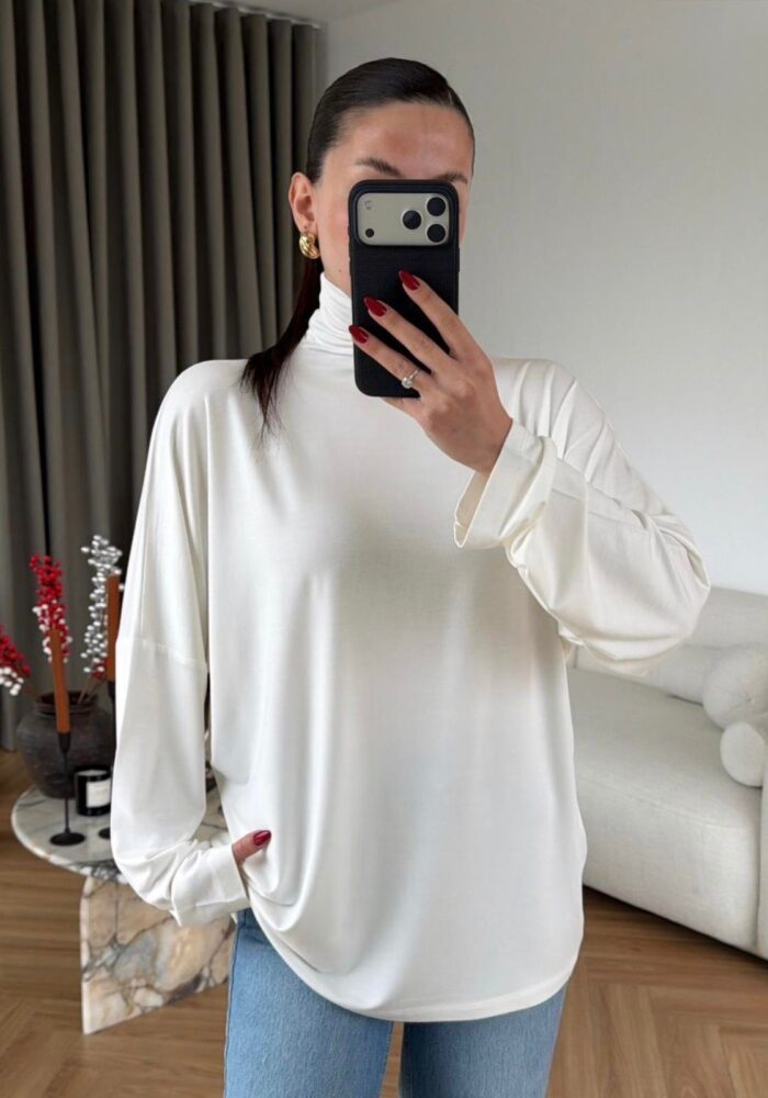 White Long Sleeve Turtleneck Top