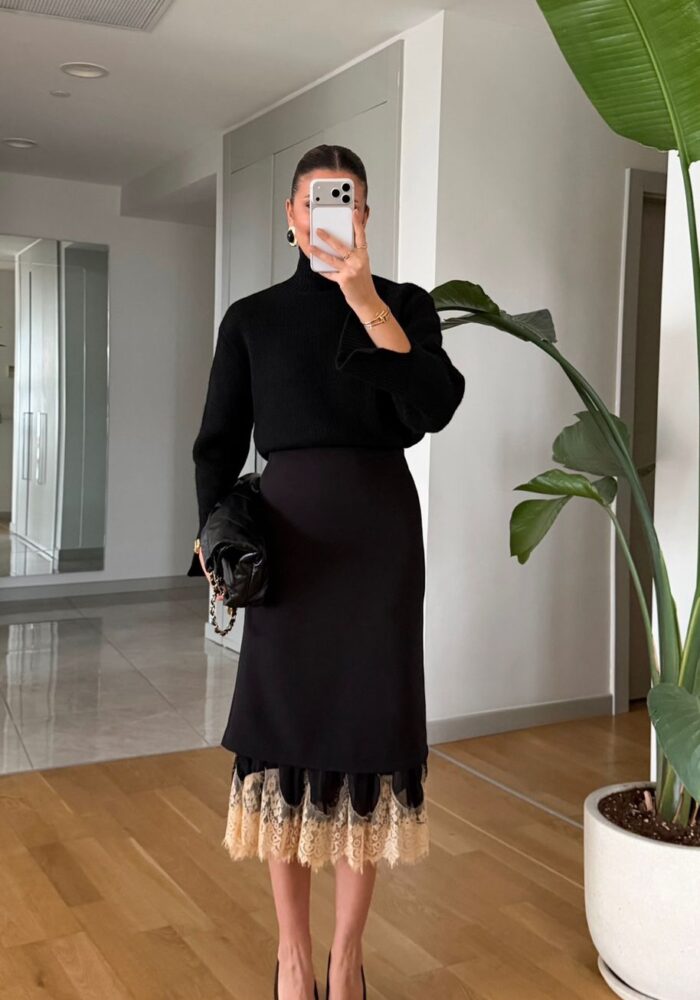 Black Lace Trim Skirt