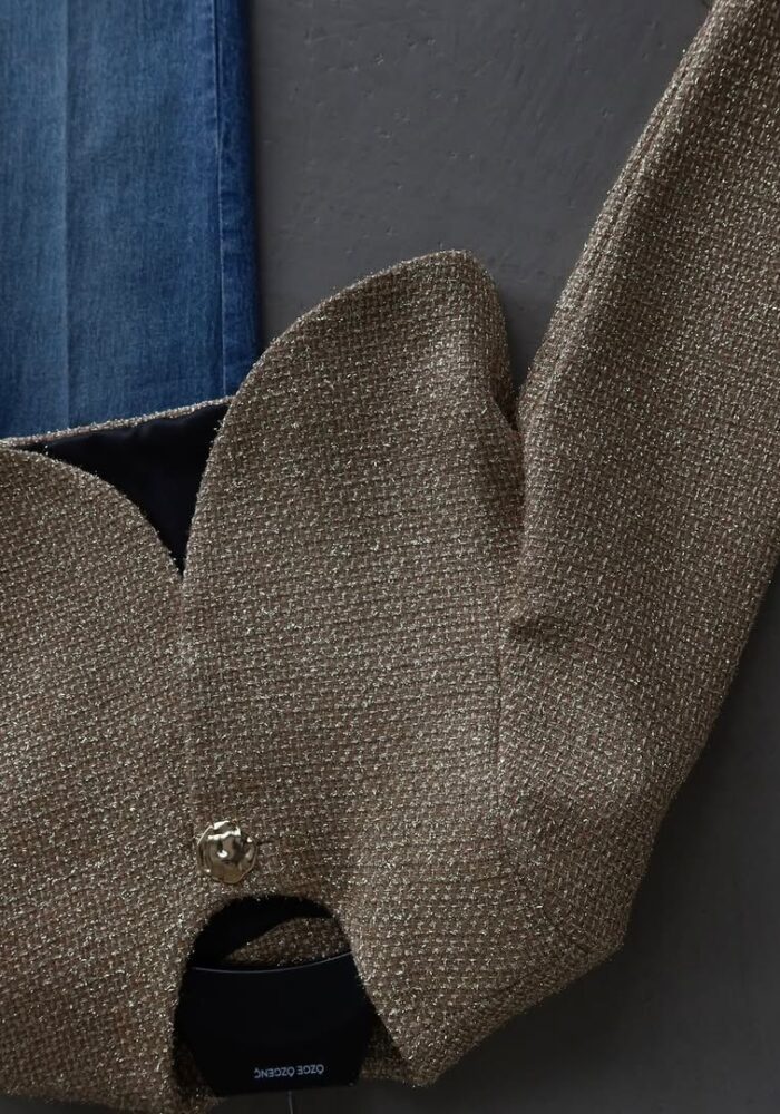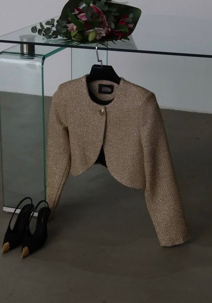 Gold Tweed Cropped Blazer Jacket