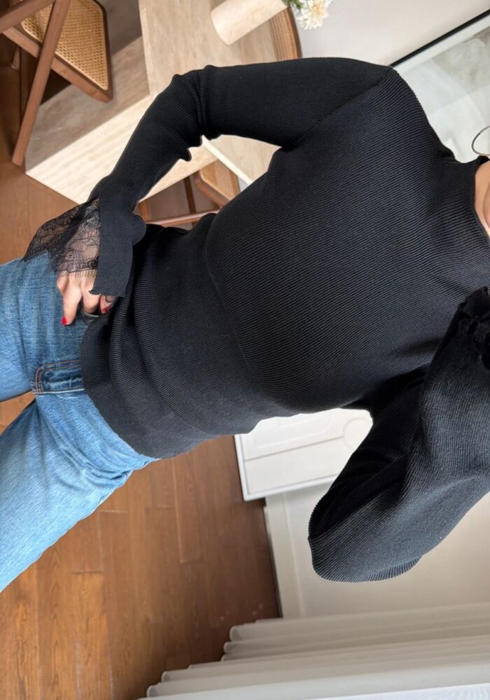 Black Lace Trim Long Sleeve Top