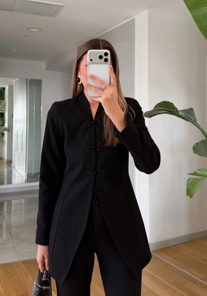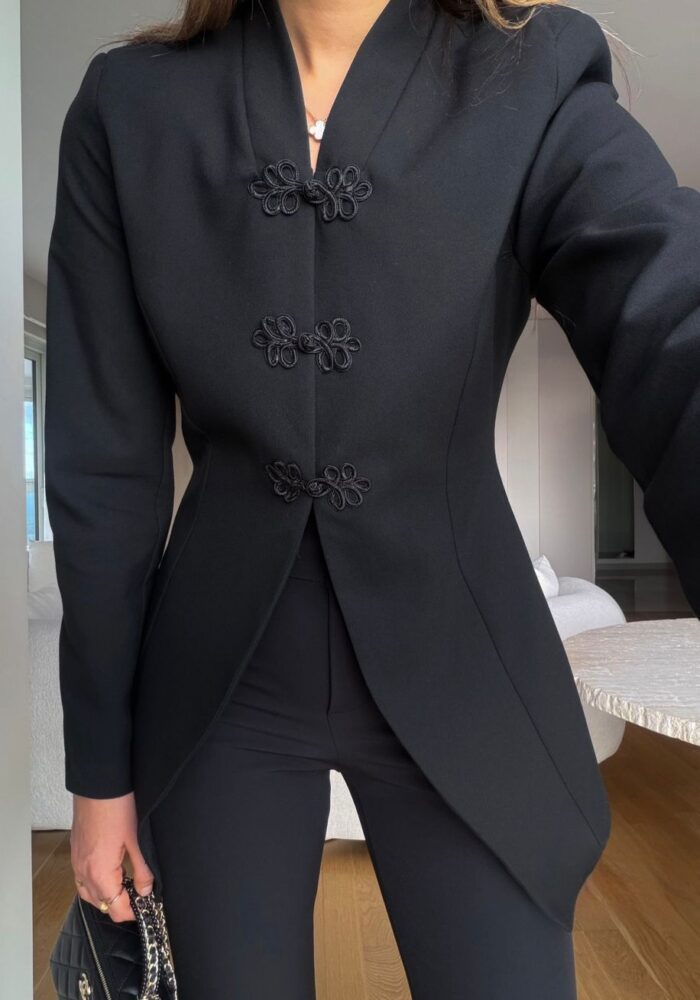 Black Mandarin Collar Jacket