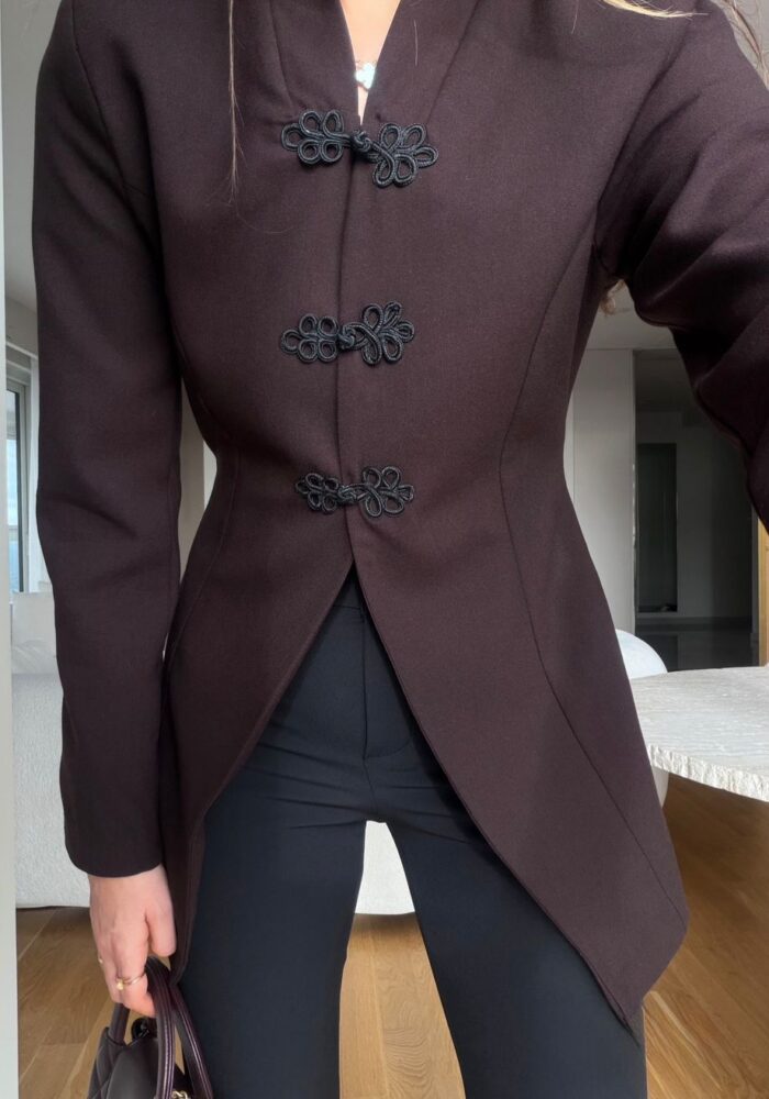 Brown Mandarin Collar Jacket
