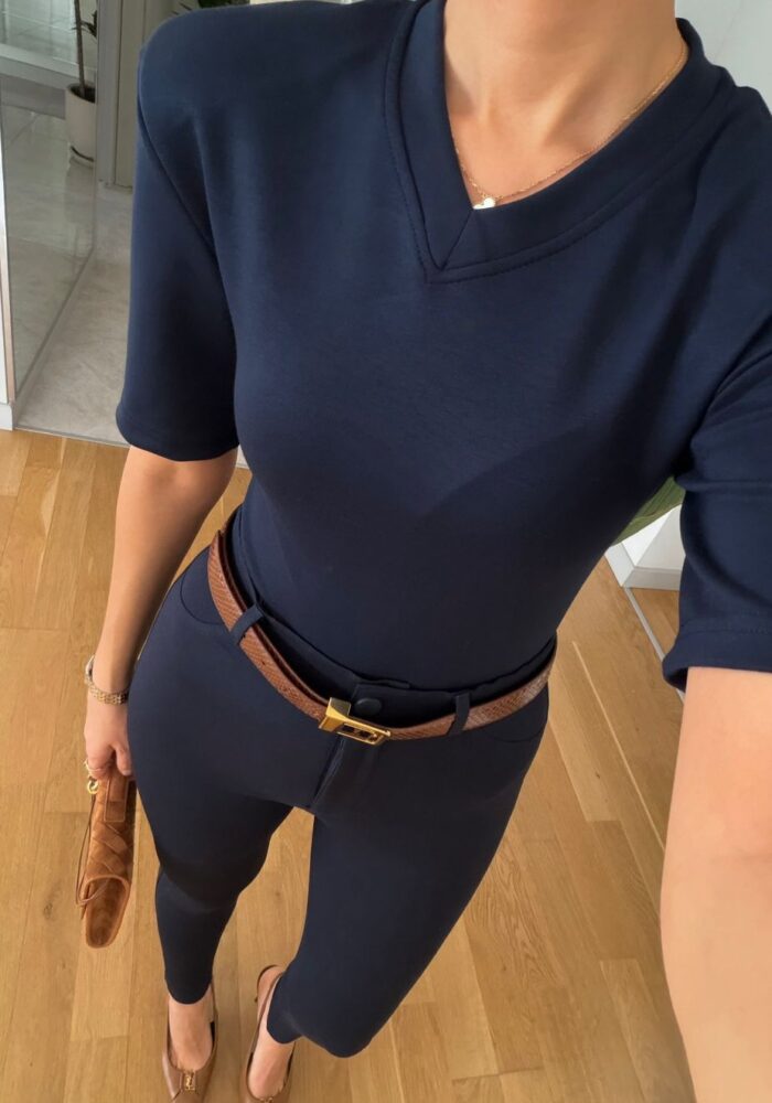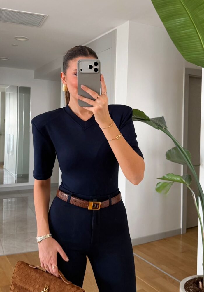 Navy Blue V-neck Structured Shoulder Body