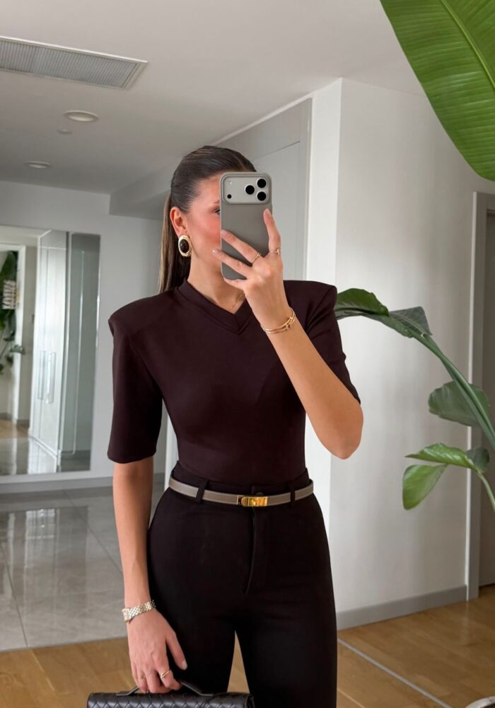 Brown V-neck Structured Shoulder Body