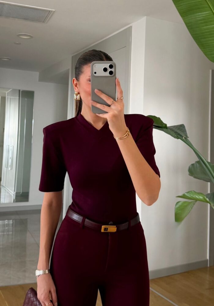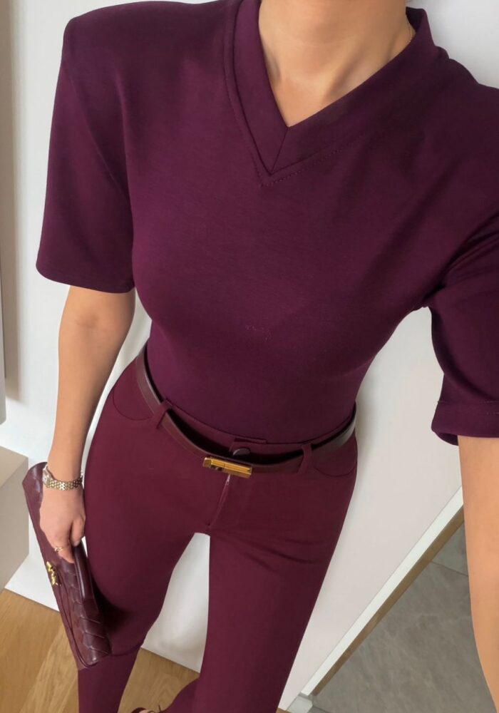 Burgundy V-neck Structured Shoulder Body