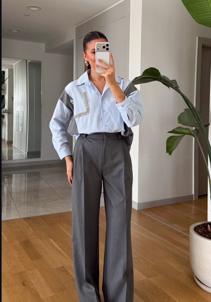 Light Blue And Gray Colorblock Shirt