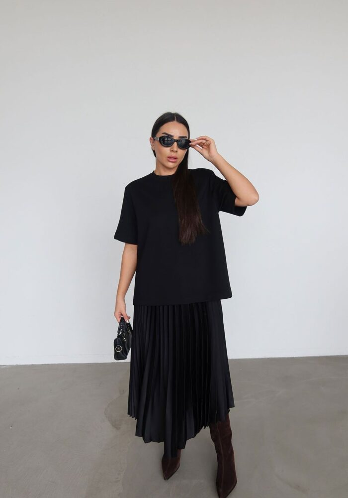 Black Pleated Midi Dress