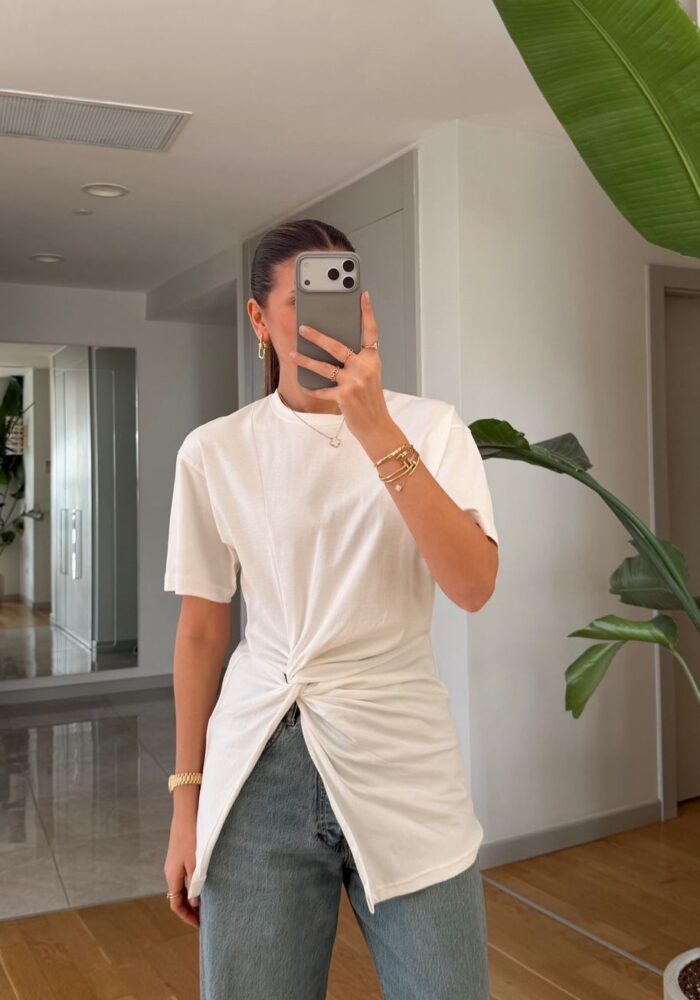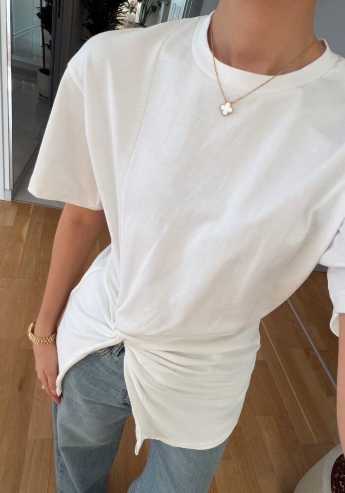 White Twist Front Short Sleeve T-shirt