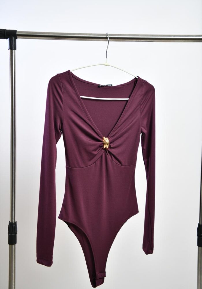 Burgundy V-neck Bodysuit