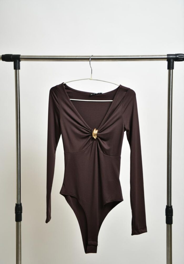 Brown V-neck Bodysuit