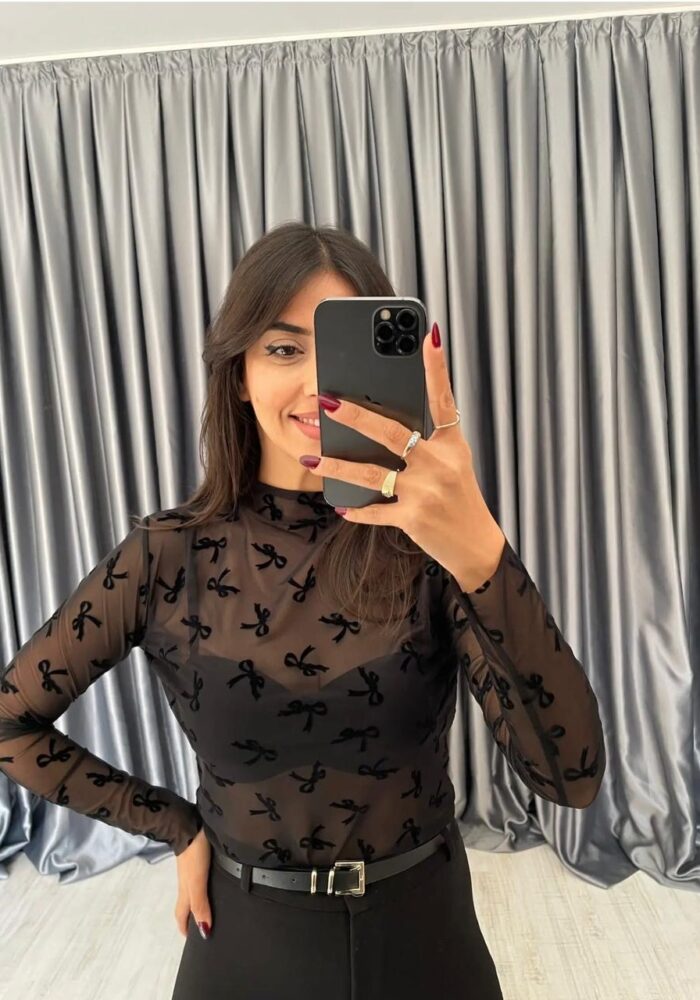 Black Sheer Mesh Bow Top