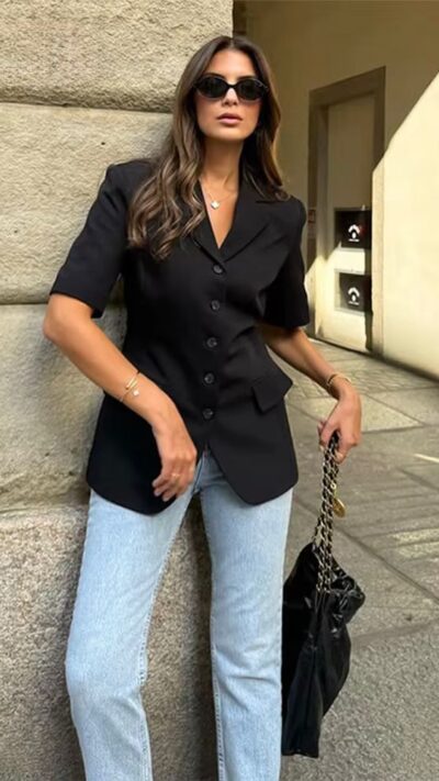 Black Short Sleeve Blazer