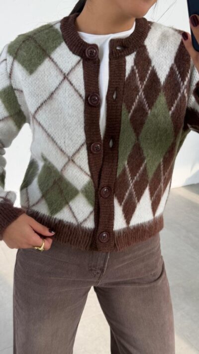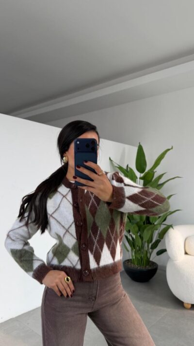 Brown Polo Collar Buttoned Brand Model Buklet Cardigan