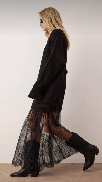 Lace Detail Velvet Dress – Black