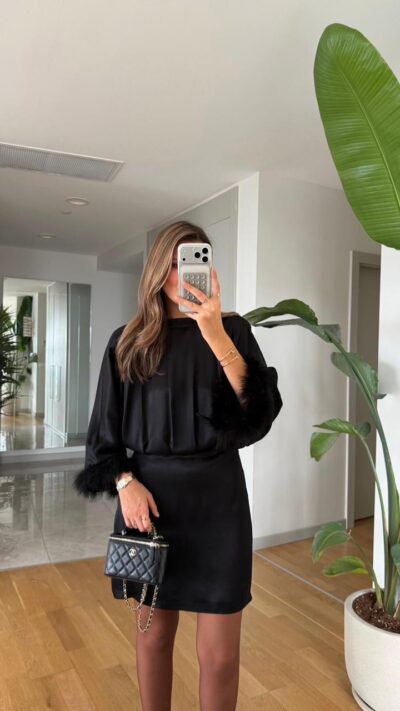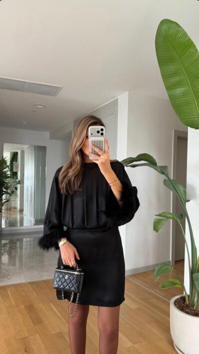 Satin Dress With Sleeves – Black