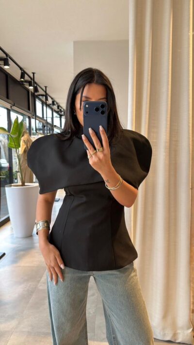 Black Structured Asymmetrical Shoulder Top